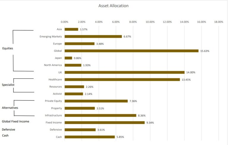 In terms of portfolio activity, we took some profit in the strong-performing holdings mentioned earlier, namely BlackRock World Mining, Jupiter Gold & Silver, International Biotechnology and RTW Biotech Opportunities, despite our continued confidence in their medium-term outlook. We reinvested the proceeds into a combination of lower relative performers (Amati UK Listed Smaller Companies, AVI Global Trust and TR Property) and more defensive positions (Pacific G10 Macro Rates, Premier Miton Strategic Monthly Income Bond and CVC Income & Growth).