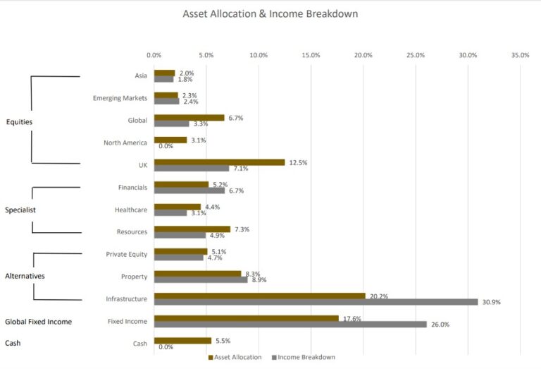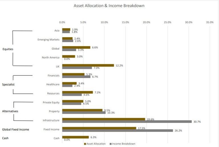 The asset allocation is derived from the full portfolio holdings and the income data shows where the the current yield is being accrued from by asset class.