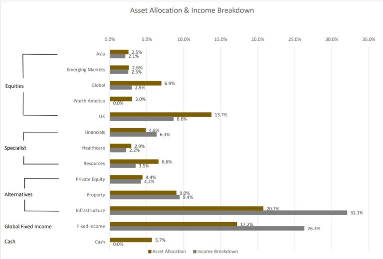 The asset allocation  is derived from the full portfolio holdings and the income data shows where the the current yield is being accrued from by asset class.